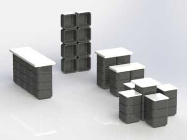 System CUBEON łączy trzy podstawowe formy, które umożliwią Ci zbudowanie dokładnie takiego stanowiska, jakie tylko chcesz. Moduły CUBE posiadają specjalną wypukłość umożliwiającą ustawianie jednego modułu na drugim. W zależności od ustawienia element może służyć również jako półka, donica, kosz, dyspenser. Wszystkie zestawy dostępne są zarówno w kolorystyce podstawowej, jak i rozszerzonej. Chcesz zlecić nam realizację projektu? Uruchom konfigurator i skorzystaj z tej opcji!
